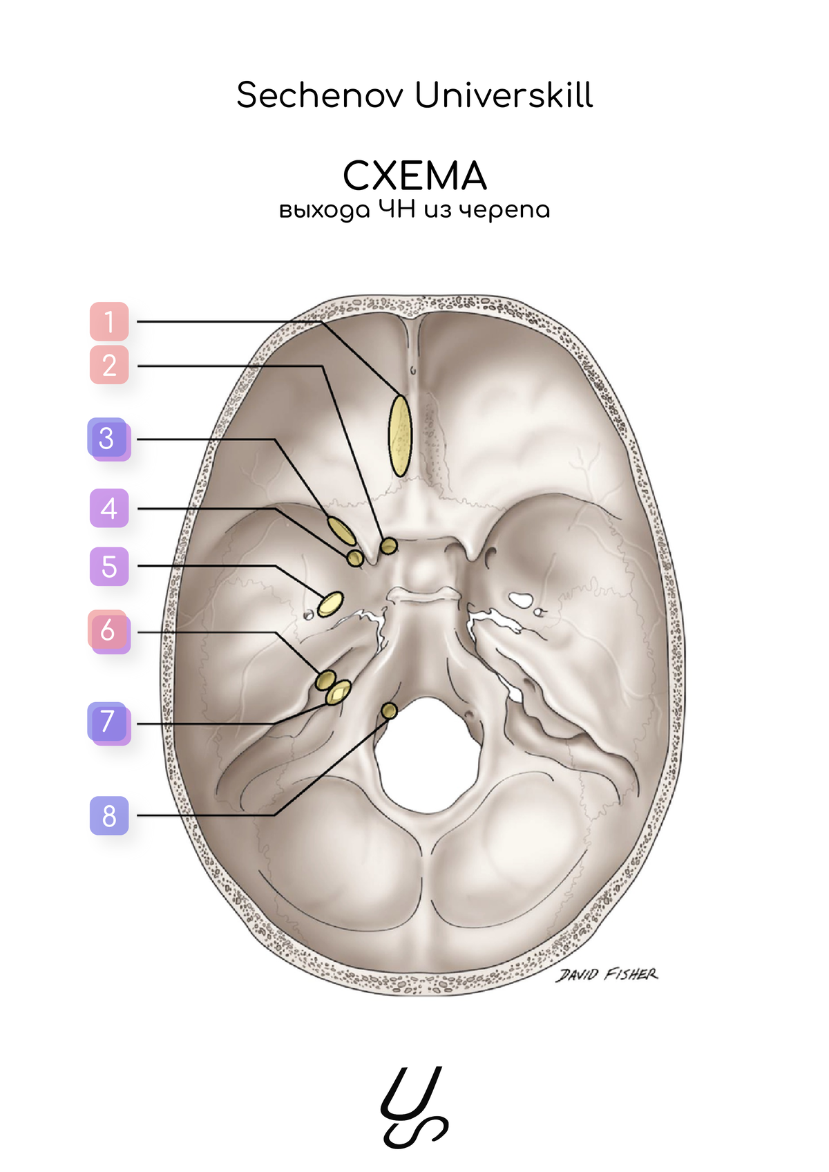 Метода для того, чтобы легко ориентироваться в отверстиях черепа и выходах ЧМН, очень наглядно и просто. Бери и запоминай💡